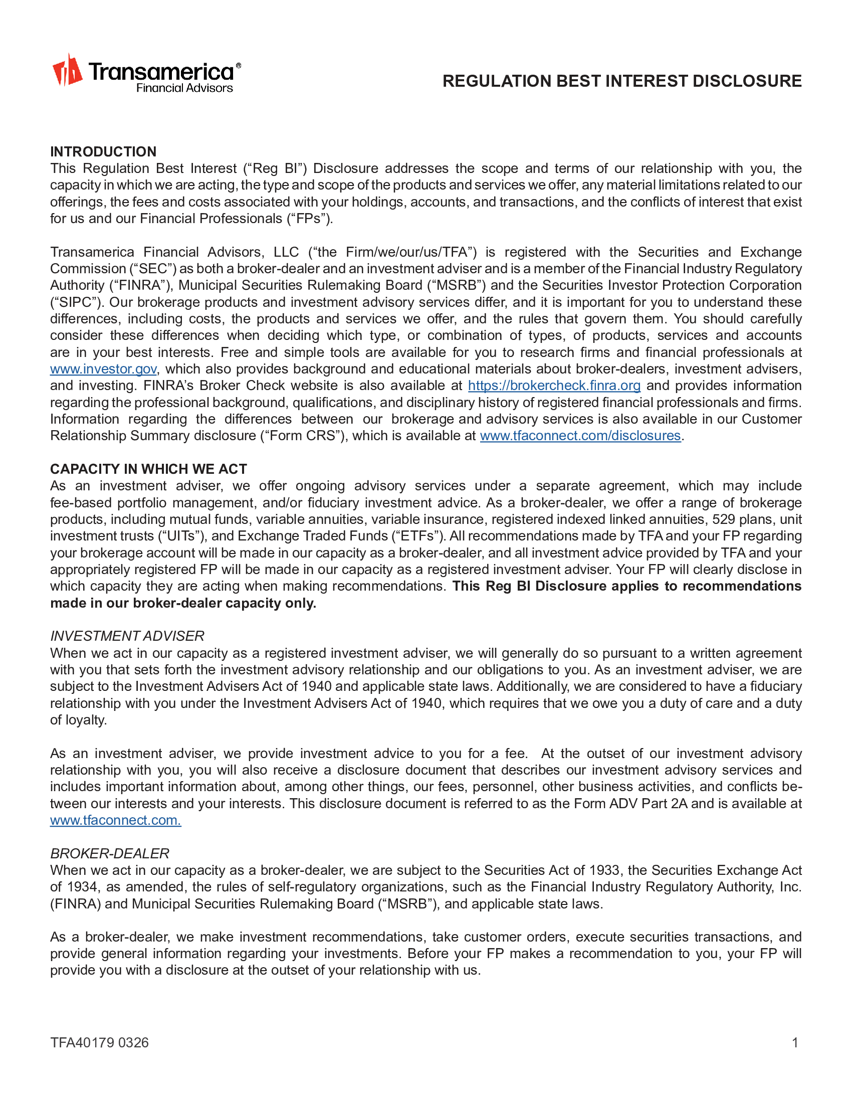 ADV Part 2A – Appendix, TFA ONE Wrap Fee Brochure